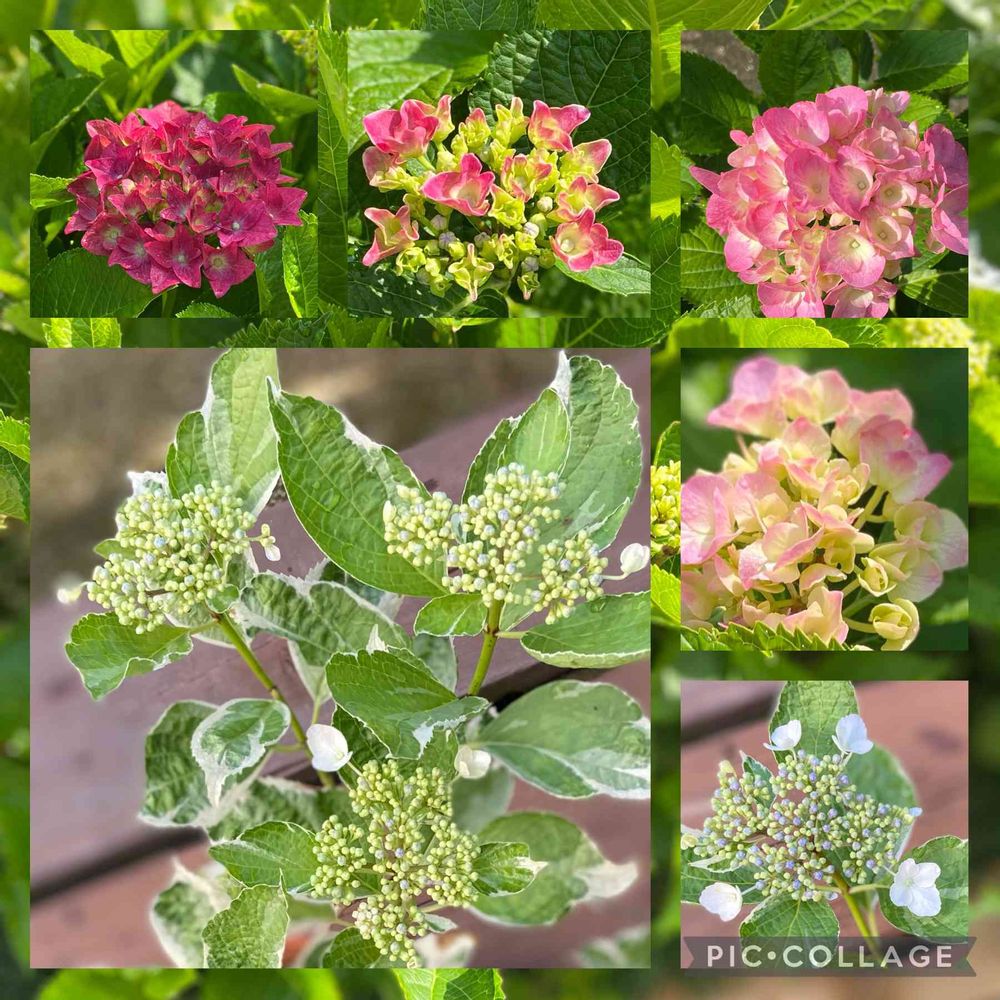 斑入り紫陽花頂いた時は地味でお花もひとつしかさかなかったのですが、去年北東の涼し場所に移動してから居心地良いのかな、今年は沢山花芽を付けてくれて嬉しいです💕