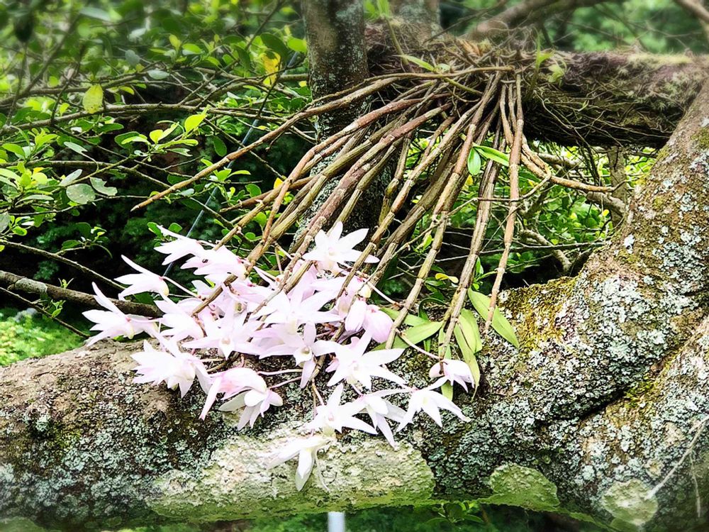 祖母が知人から古木に着床したのを頂いて、それをツゲの木の枝に引っ掛けてるだけなのです😄