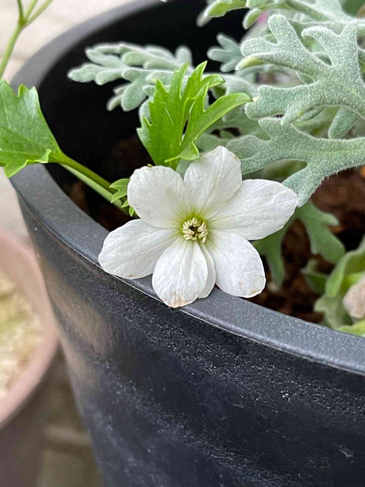 一輪だけプラーンとしてたので、隣のフランネルフラワー の縁をちょっと拝借。