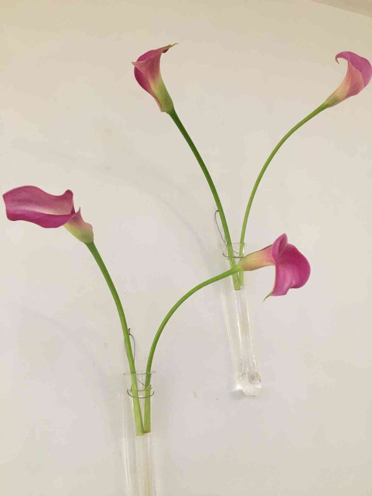 ガラスのベースもあるとオシャレですよね、かべに飾ってみたいですね