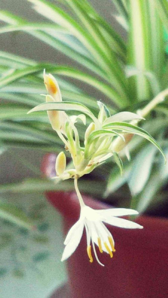 オリヅルラン(折鶴蘭)の花言葉|意味や花の特徴、名前の由来は?