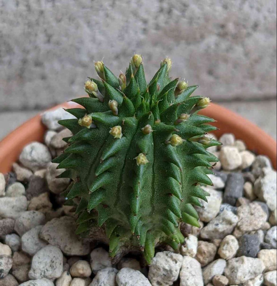 エケベリアみたいな色の派手さは無いですが、フォルムの主張はさすがユーフォルビアですよね🤩ドラゴンボールと聞くと⭐が入ったツルツルの球の方を連想してしまいます😅💦