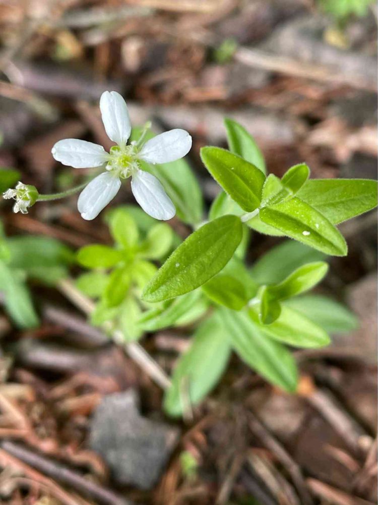 オオヤマフスマはノミノフスマより葉が大きく、山地や深山に自生していることで、「大と山」を合わせて命名されたとか。(ノミフスマは田や野原に自生。)