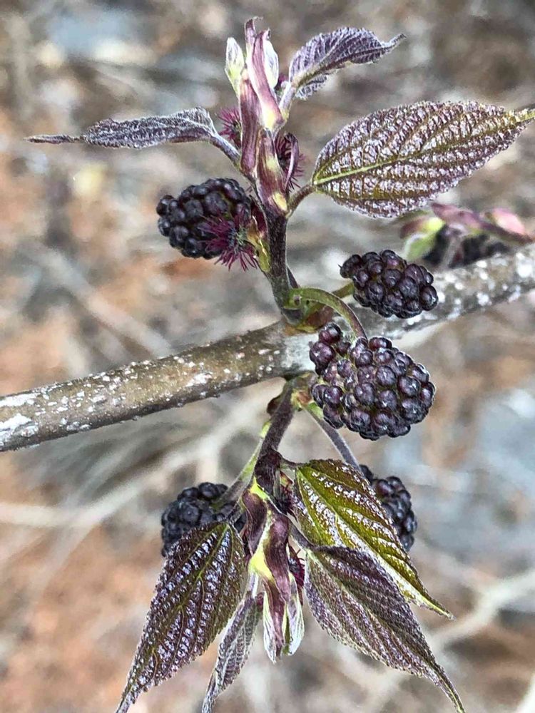 4月19日、鹿沼の南摩付近で見かけた、「コウゾ」の若葉と雄花のつぼみの集合体❗️まだ一部しか開花していません⁉️