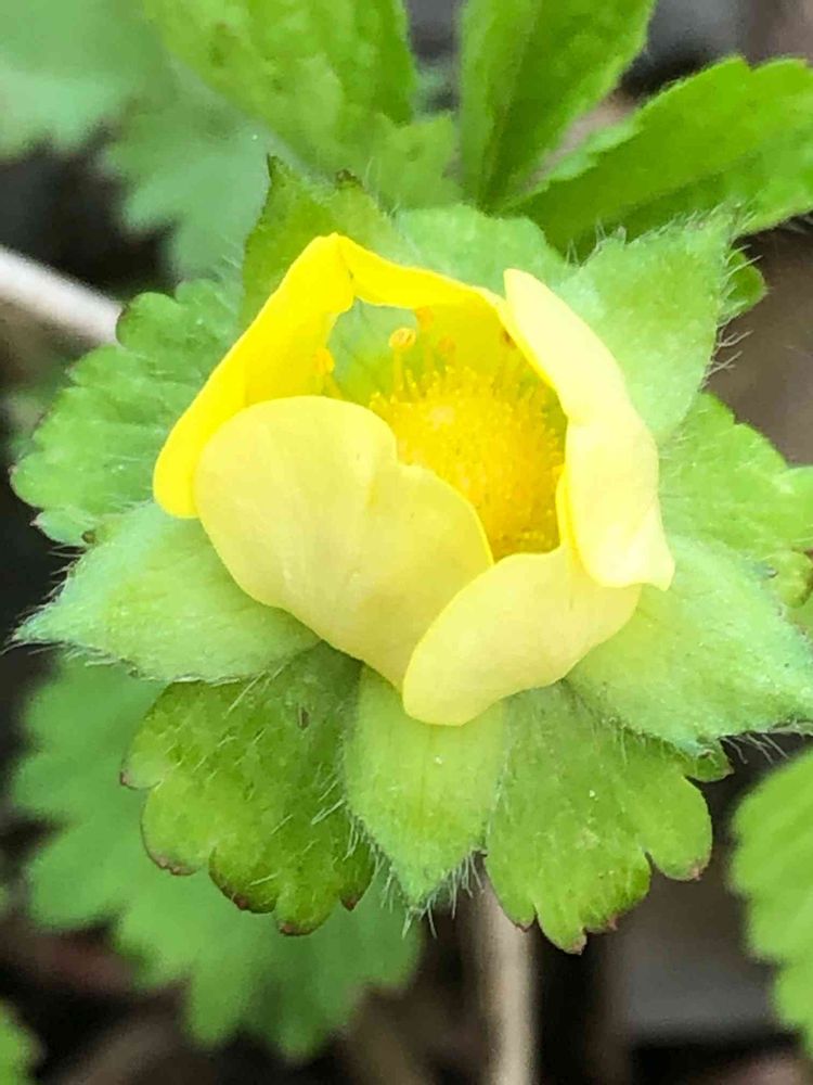 4月22日、鹿沼の山里で見つけた、たぶん「蛇苺(へびいちご)」の黄色くて可愛い花🌼のつぼみ❣️
