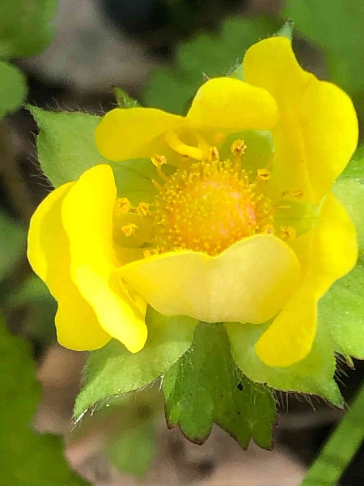 最初、何か分からず、あまりの可愛さに、思わずパシャリ‼️後で、周りで花びらを開いて咲く、花🌼を見て、なんとまあ〜❗️「蛇苺(へびいちご)」の花である事に気がつきました⁉️