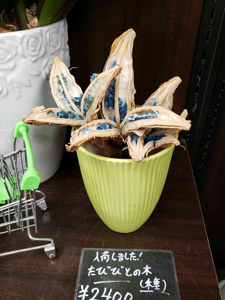 スーパーの中にある花屋さんで発見した珍種「たびびとの木(種)」