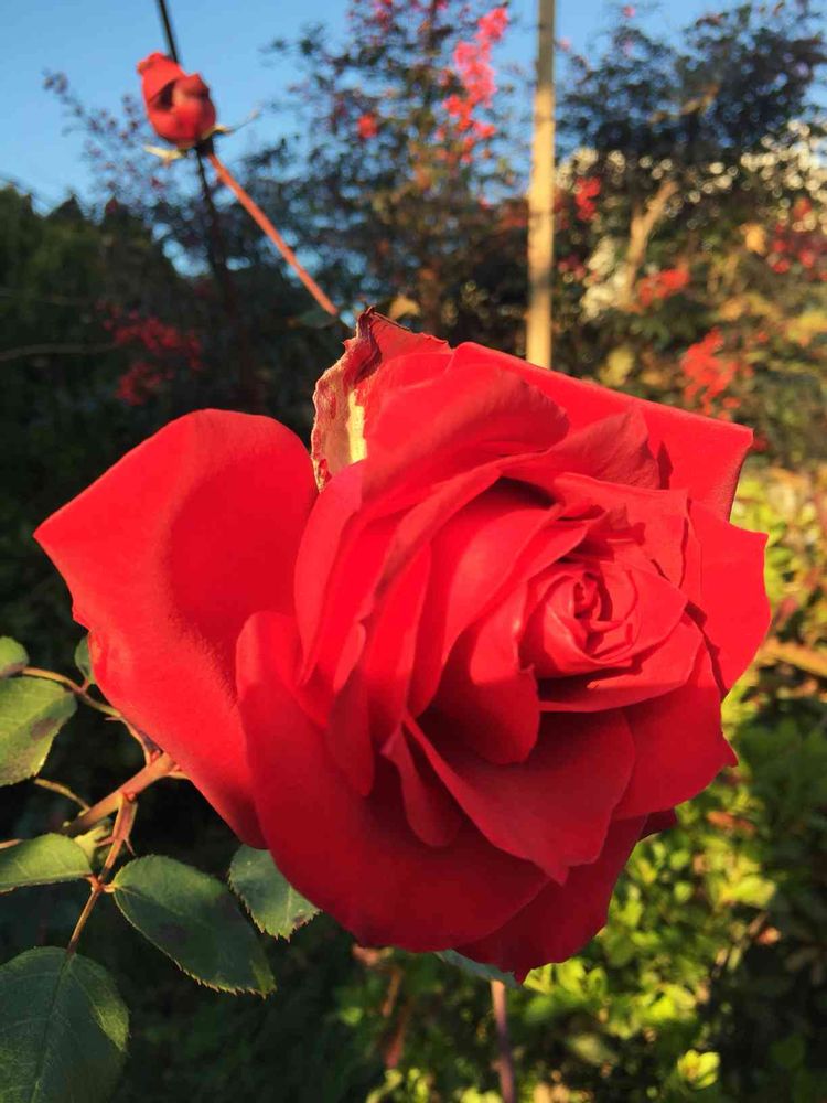 実家の庭に最後の一輪真っ赤な薔薇が咲いていました。