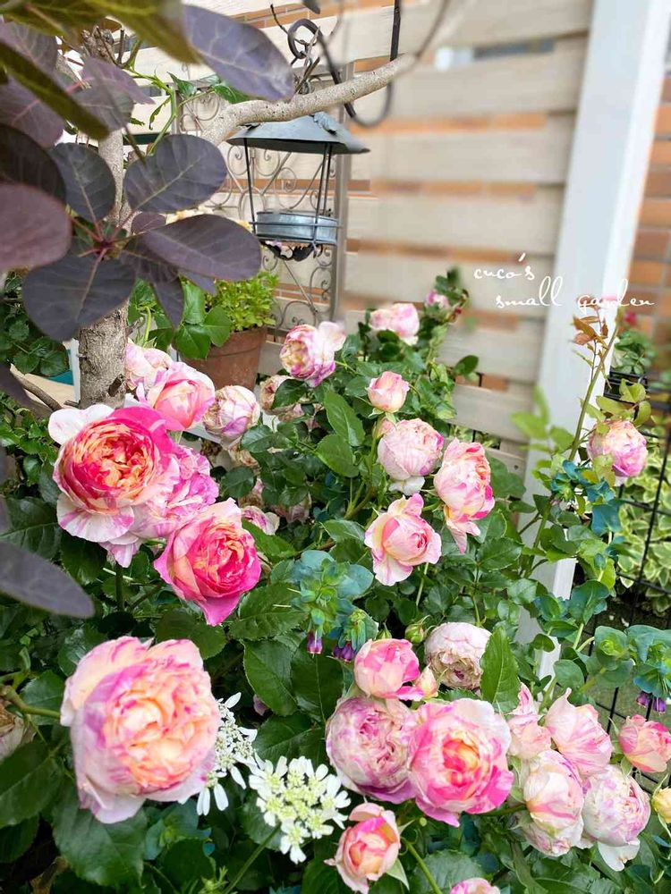昨年は鉢植えだったので、少し長めのステムが狭い庭に合わなくて、あまり良い印象が無かったのですが、今季はある程度自由がきく場所に植えたら、とーっても可愛い♡と、今更気付きました。