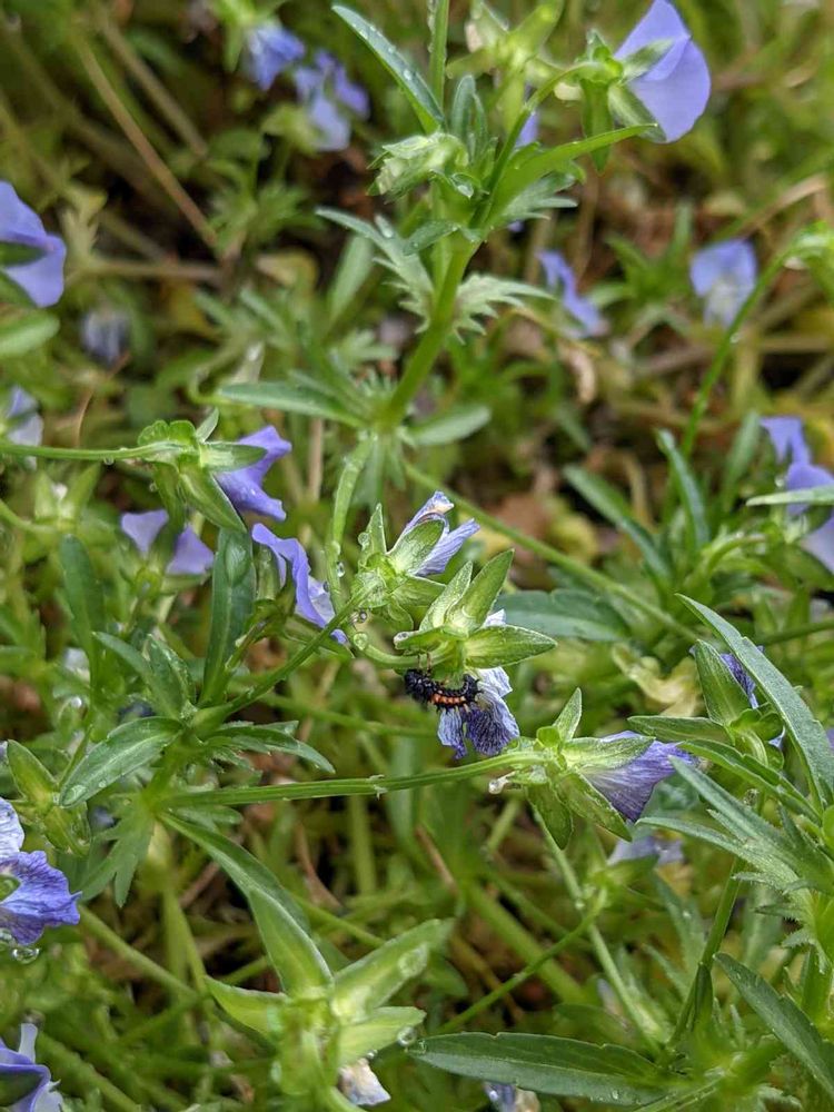 ビオラにトゲゾー君が🐛夏のお花に植え替えようと思ってたけど、もうちょっと先にしようかな😅