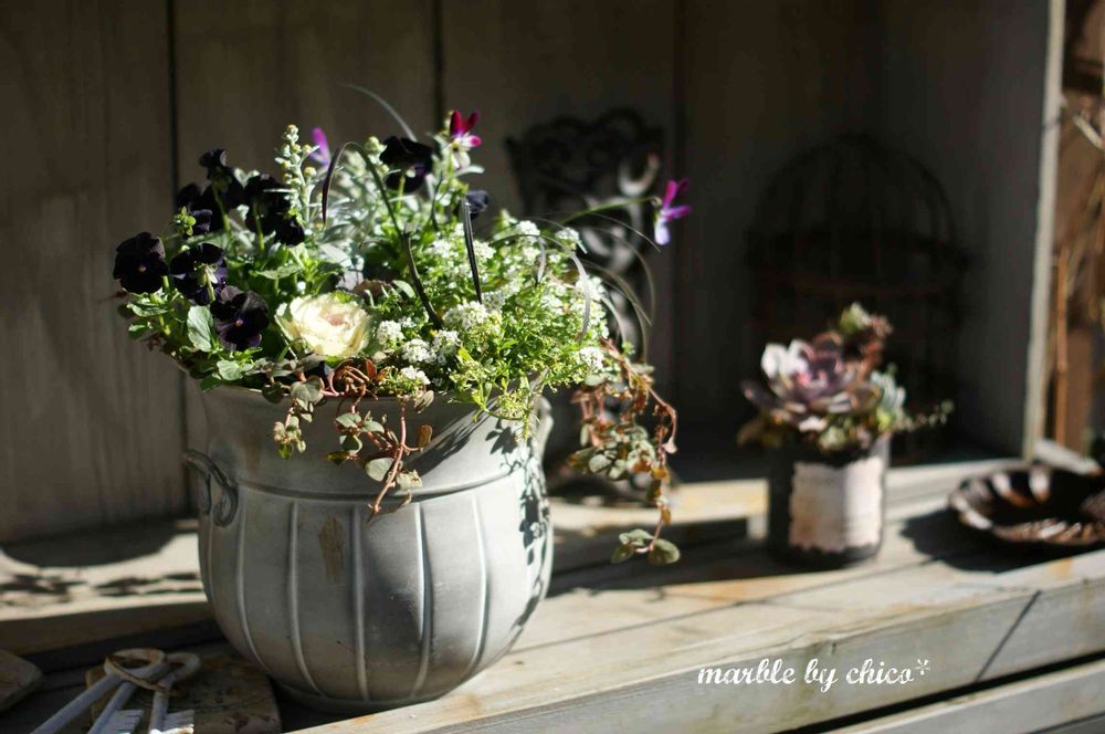 シックな黒いビオラにうさちゃんビオラでちょっと可愛さも添えて。