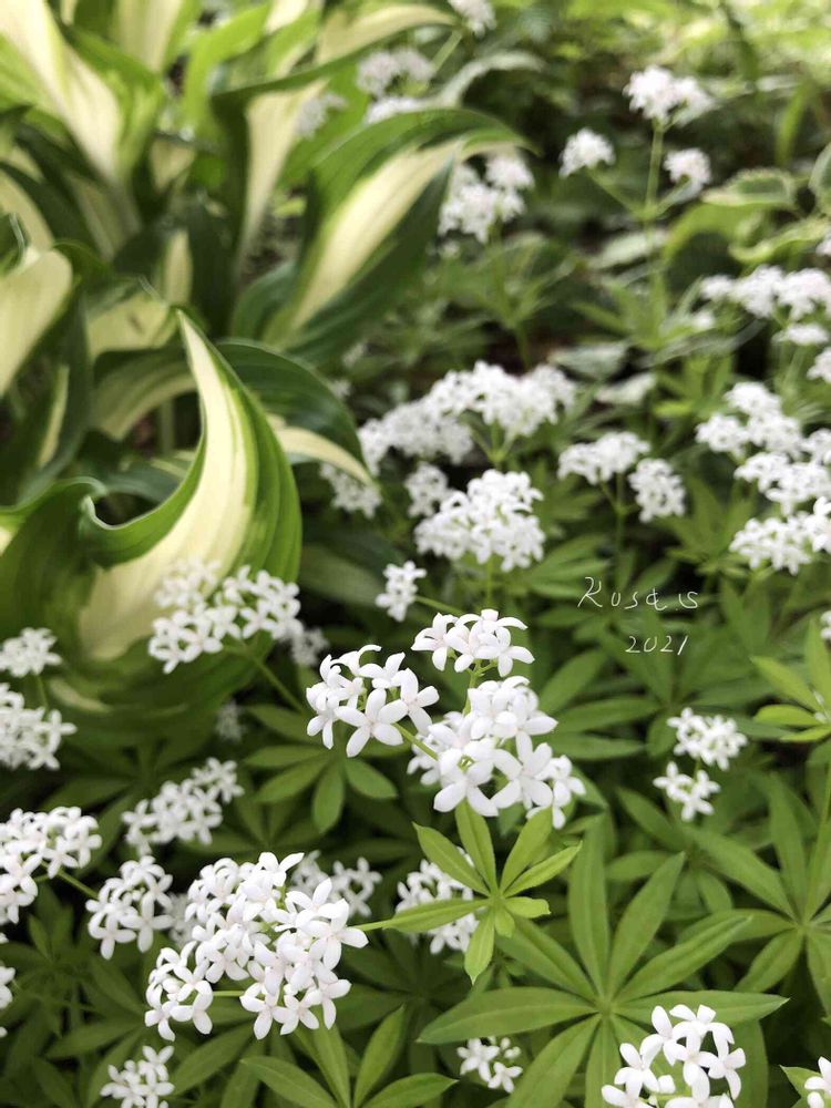 毎年恒例?のクルマバソウの群生とホスタ(๑˃̵ᴗ˂̵)