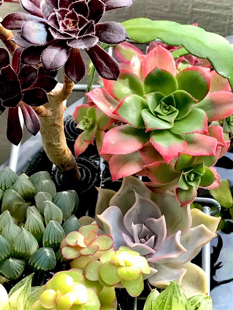 今週の窓側はアエオニウム、エケベリア、カクタスなどの太陽大好き組中心です。