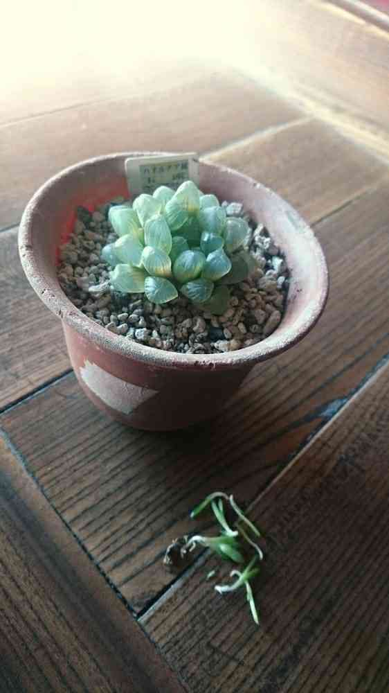 ハオちゃん、枯れ葉毟ってたら新芽にょろーん