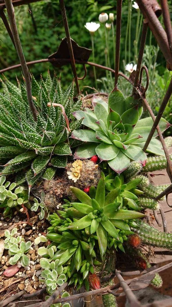 すご〜い、多肉の寄せ植えにお花が咲いたんですね🎶