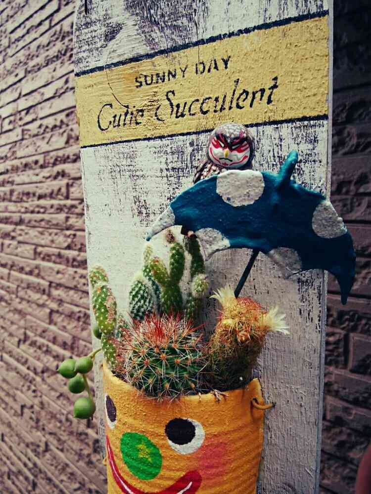 サボテン寄せ植えにお花が咲きました~🌵🌼