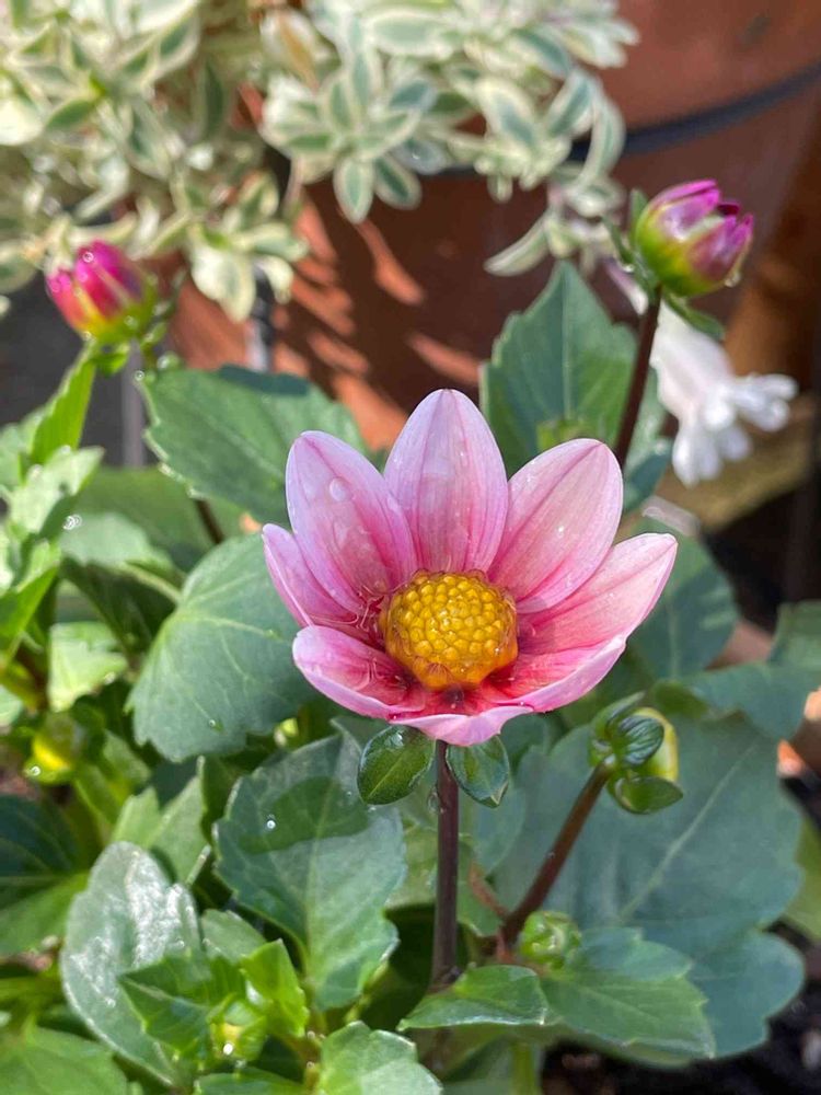 ピンクの方はポンポン🌼咲いてくれてる〰️💕…赤はゆっくり🐌(笑)