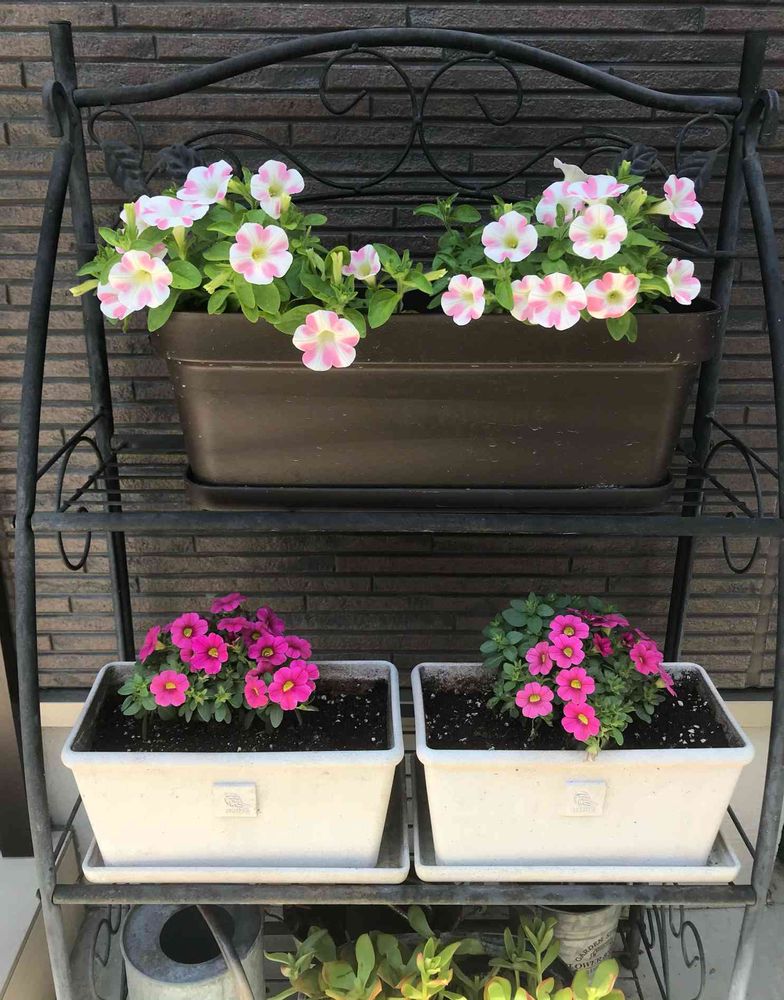 植えてから三週目の桃色ハートと、二週目のミリオンベル