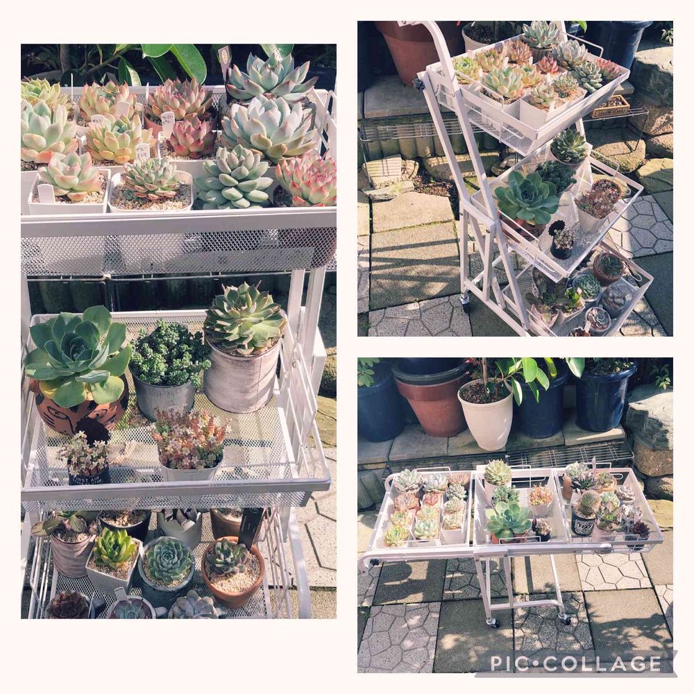 YouTubeではなさんが紹介されていた角度調整付きの多肉棚届きました〜YouTubeで紹介されてからすごい人気でなかなか注文できませんでしたが楽天で予約購入ができました。キャスター付きで角度も変えれて雨の日は軒下へ天気のいい日は日光浴で これなら上手く使えば遮光要らずだし 台風の時の避難も楽だと思います。😊