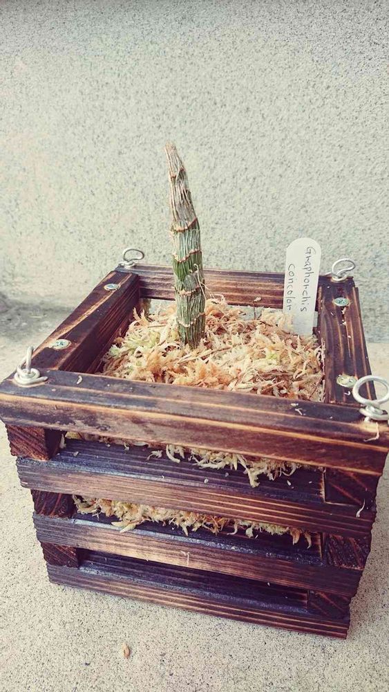 コンポストは水苔、根の中心にヤシガラのクラッシュを抱かせて、お守り程度に根の下にくん炭を敷いています。