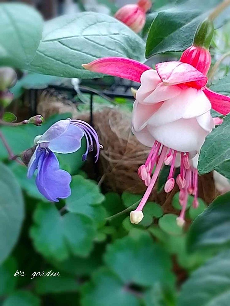 小さな庭,クレロデンドルム・ブルーウィング,フクシア エンジェルスイヤリングの投稿画像