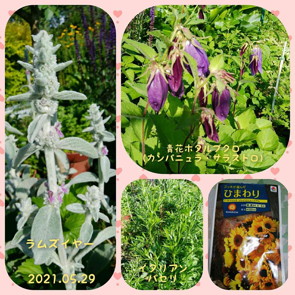 ラムズイヤーや青花ホタルブクロも咲いてきました。
