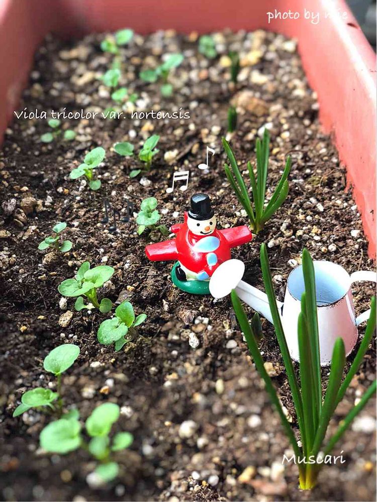 ムスカリ(右)も芽が出てきて今の所順調に育ってます◡̈⃝︎⋆︎*