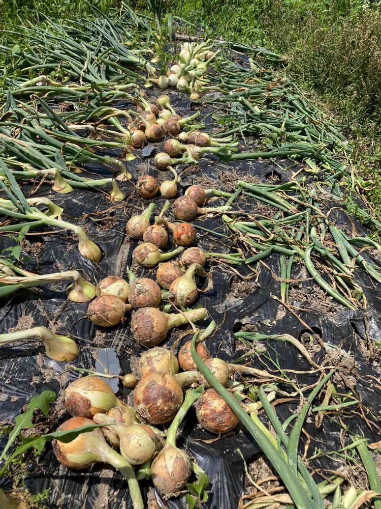 晩生玉ねぎの天寿ともみじ3号、半分を収穫しました。