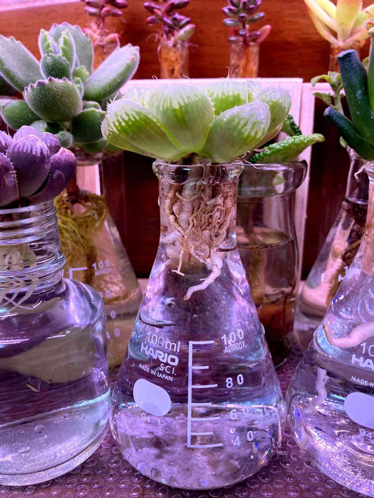 2021/2/21から自室で多肉植物の水耕栽培を始めました! フォロー大歓迎です! 自室は太陽光が一切差さないので、光は植物育成用LEDのみを使っています。 完全な初心者ですがよろしくお願いします!