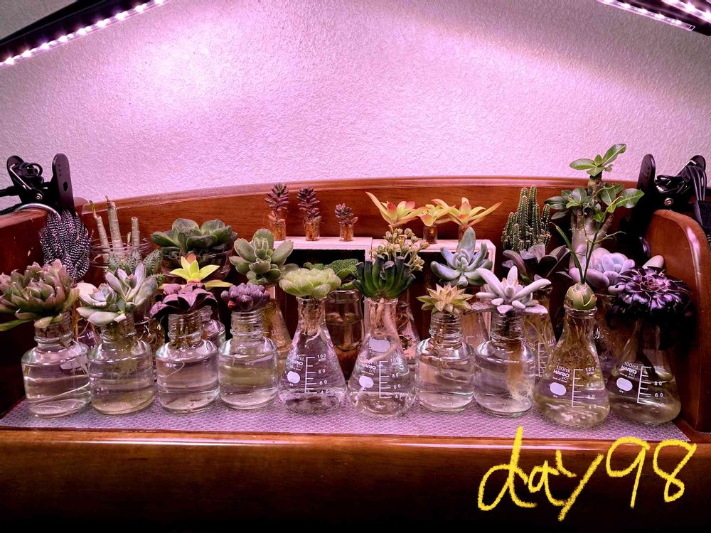 2021/2/21から自室で多肉植物の水耕栽培を始めました! フォロー大歓迎です! 自室は太陽光が一切差さないので、光は植物育成用LEDのみを使っています。 完全な初心者ですがよろしくお願いします!