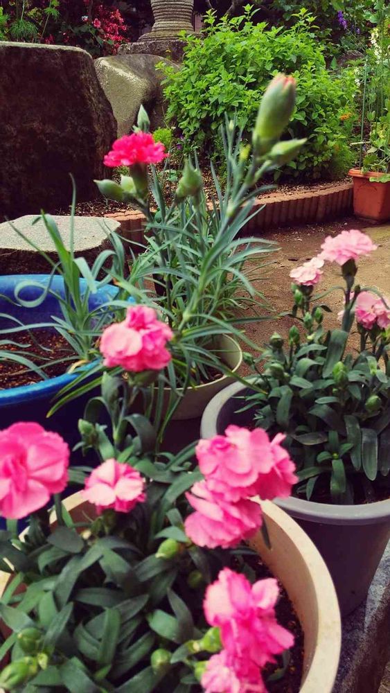 さん、こんにちはヽ(^0^)ノ一昨年、母の日にもらったカーネーション🌼植え替えの時、保険で挿し芽したのが3本程そだちました😍見てくださり、ありがとう😊ございます🥰