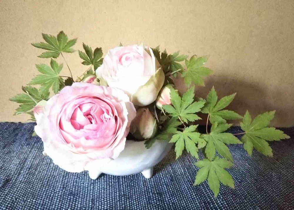 和のイメージのもみじなのに、一花さんのセンスで薔薇もしっくりですね💕