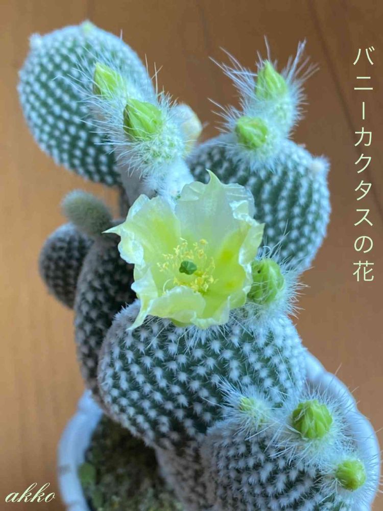 バニーカクタスのふんわりした花が咲きました🌼