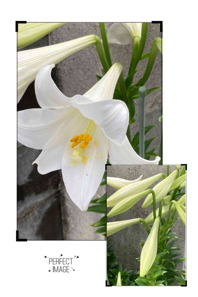 純白の百合の花とつぼみ