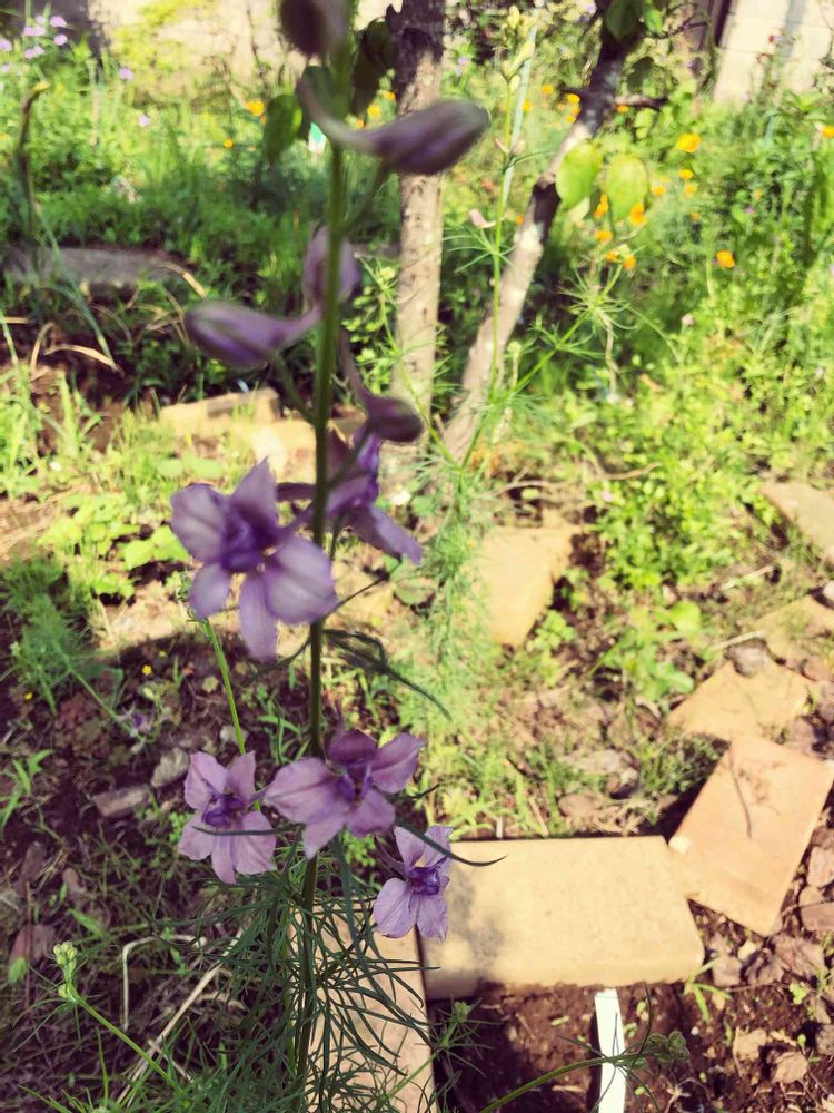 今年は去年買ったラークスパーアールグレイの周りに何本かが育ち花をつけた