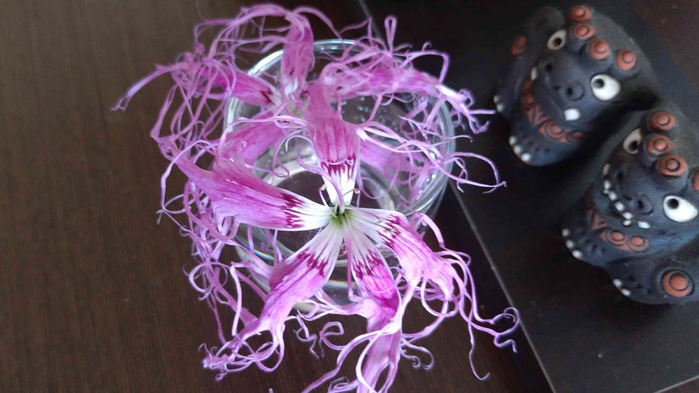 伊勢なでしこ 花びらのビラビラがカールしています🌀切り花は結構長持ちしてますよ😸