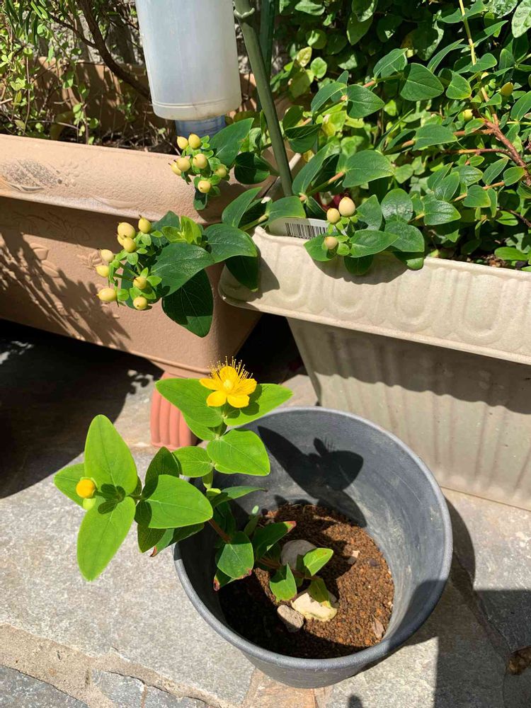 ヒペリカムの長く伸びてたところを切って挿木したのに、花が!日光を浴びて気持ちよさそうです☺️♪#オトギリソウ属#ヒペリカム
