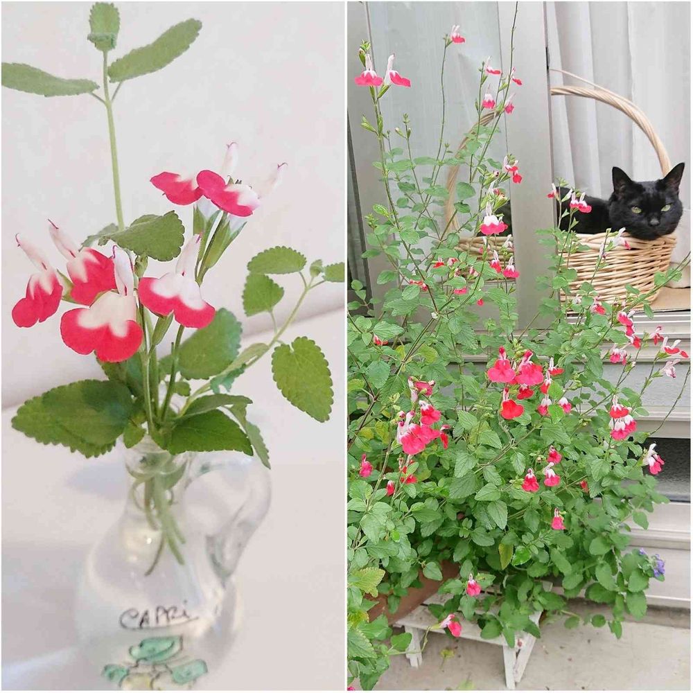 チェリーセージ ホットリップスとキャットミントを小さい切り花にしました。