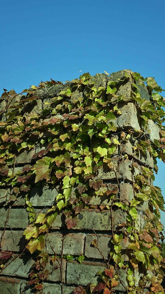 このツタももっと紅葉するはずなんだけど、場所が悪かったのかまだまだ緑色><