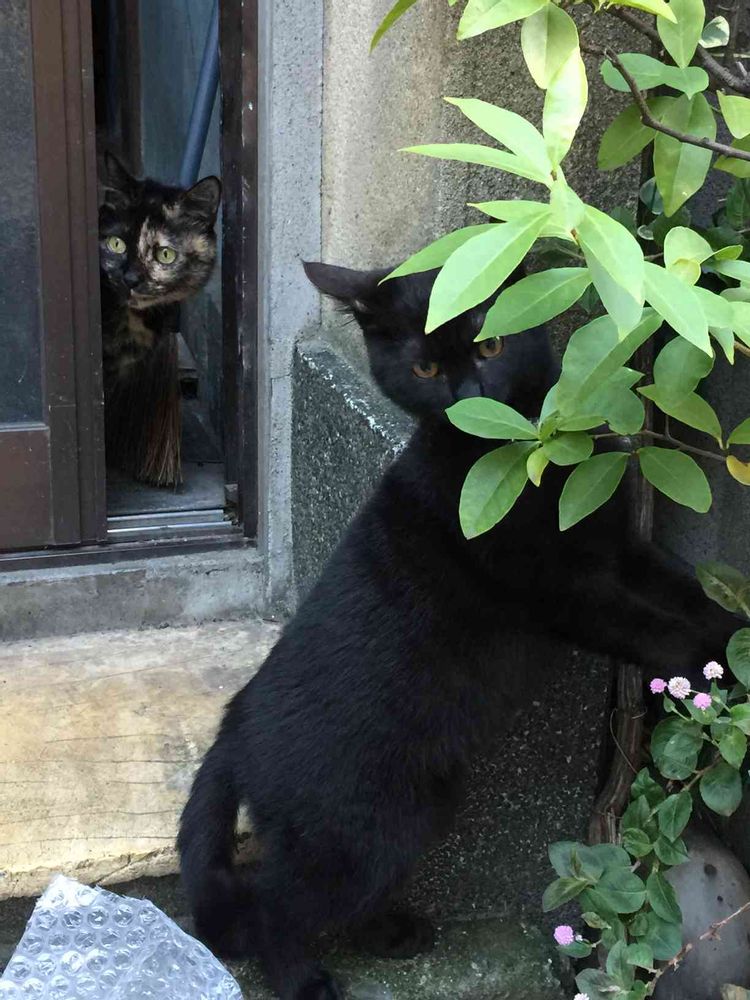 奥に居るニャンコちゃん娘の猫にソックリです🐱🐱ばんまつりまだ青々としてますね🌿🌿