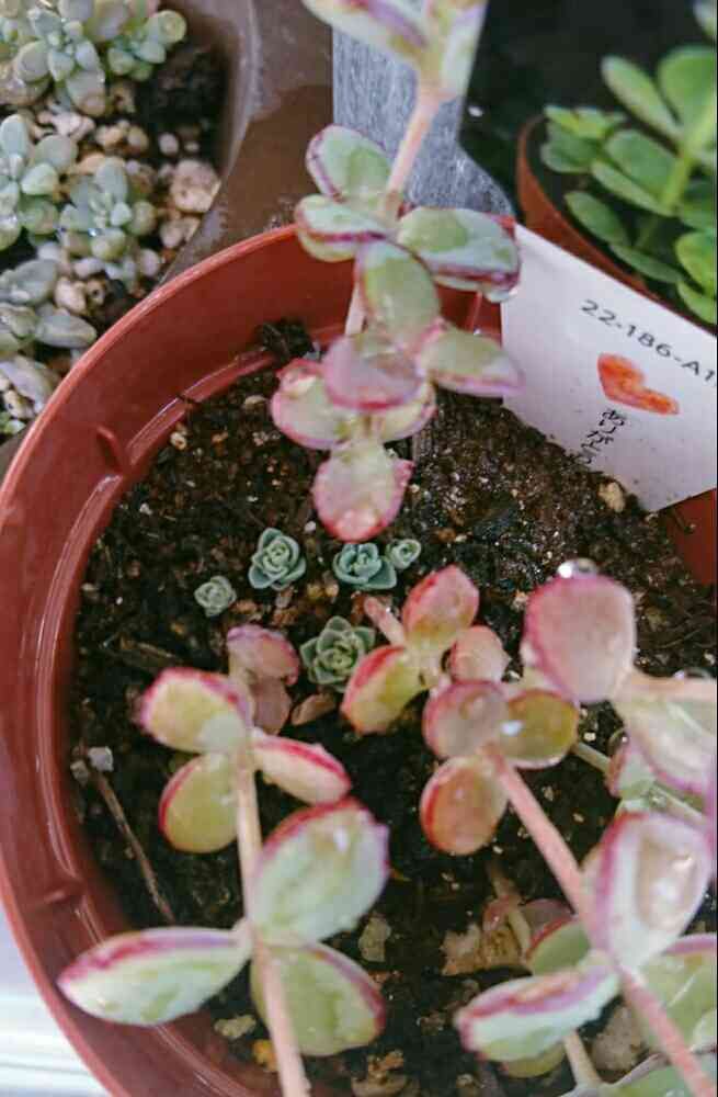 ミセバヤのbabyが顔を出してました。親株もまだ小さいのに✨