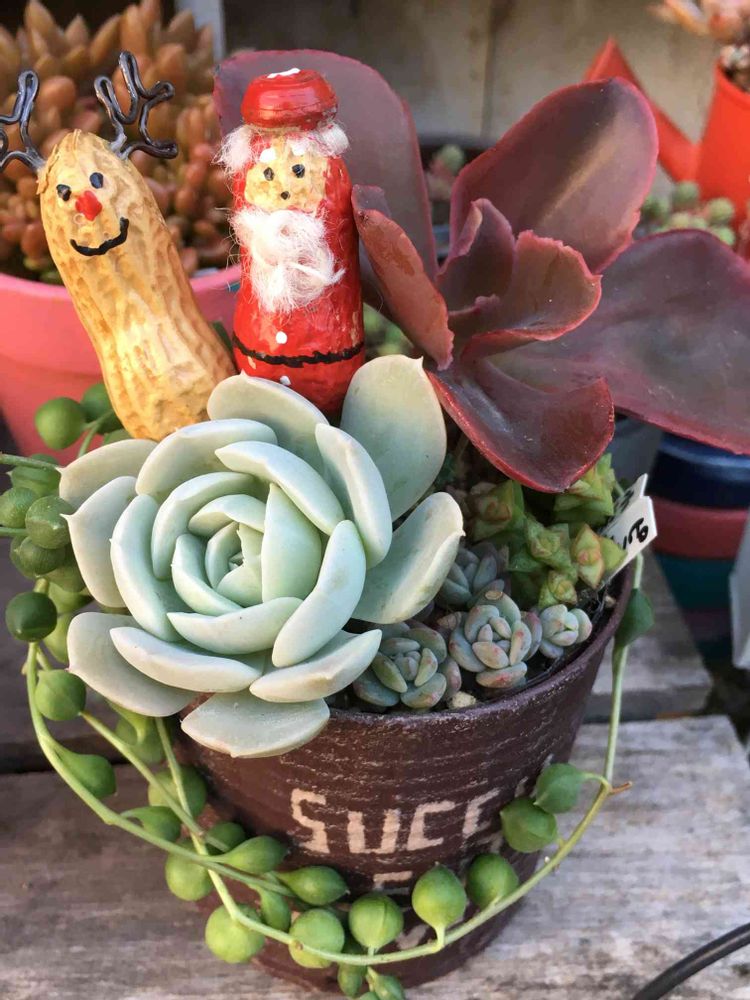 うちの多肉ちゃんは季節感がいつ見てもないや🤣 サンタさんいるだけで冬、クリスマスだよね🎵 ルンヨニー、うちもキュッと締まって可愛くなって来たよ。私もサンタさん一緒に写してみよう🤣