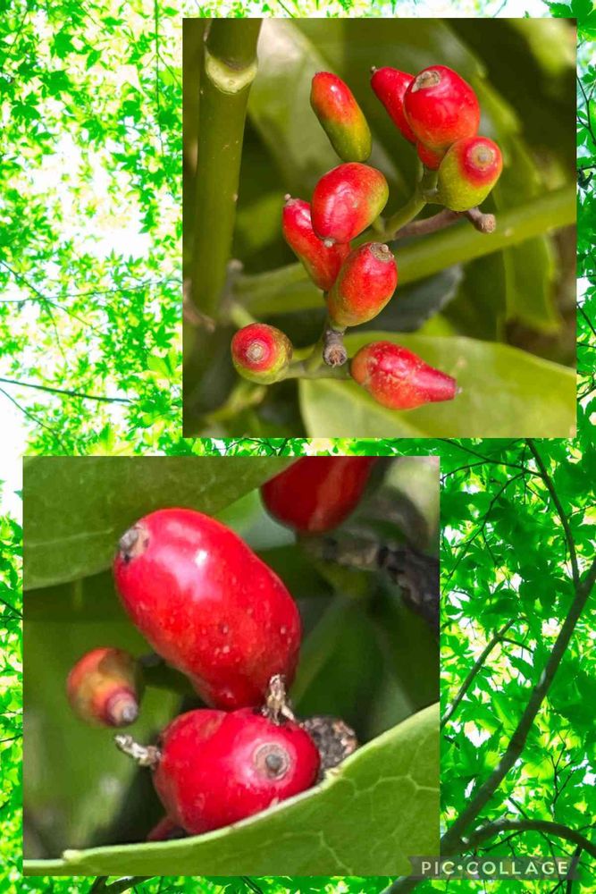 アオキの赤い実も生っています♥️