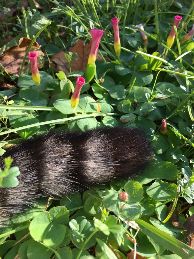 雑草を取り除こうとしたら「遊ぼ♪♪」と 尻尾で邪魔をする 愛猫の あちゅ君💧