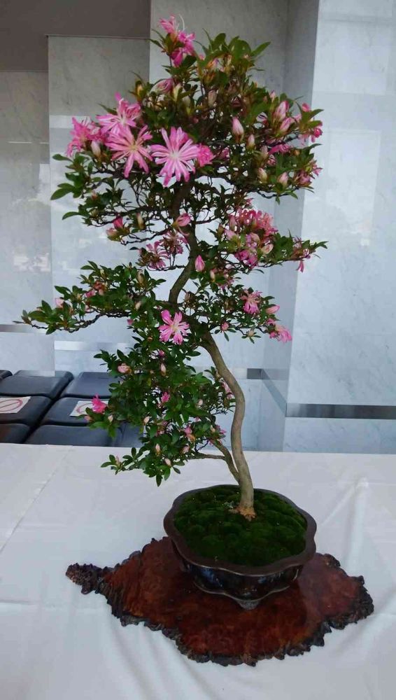 さつきの盆栽、素晴らしいものを見せていただきました。手を合わせたくなりました。😊私も展示会があれば行っていますよ。脇の添え物、山野草が使われていることが多いので楽しみです😊