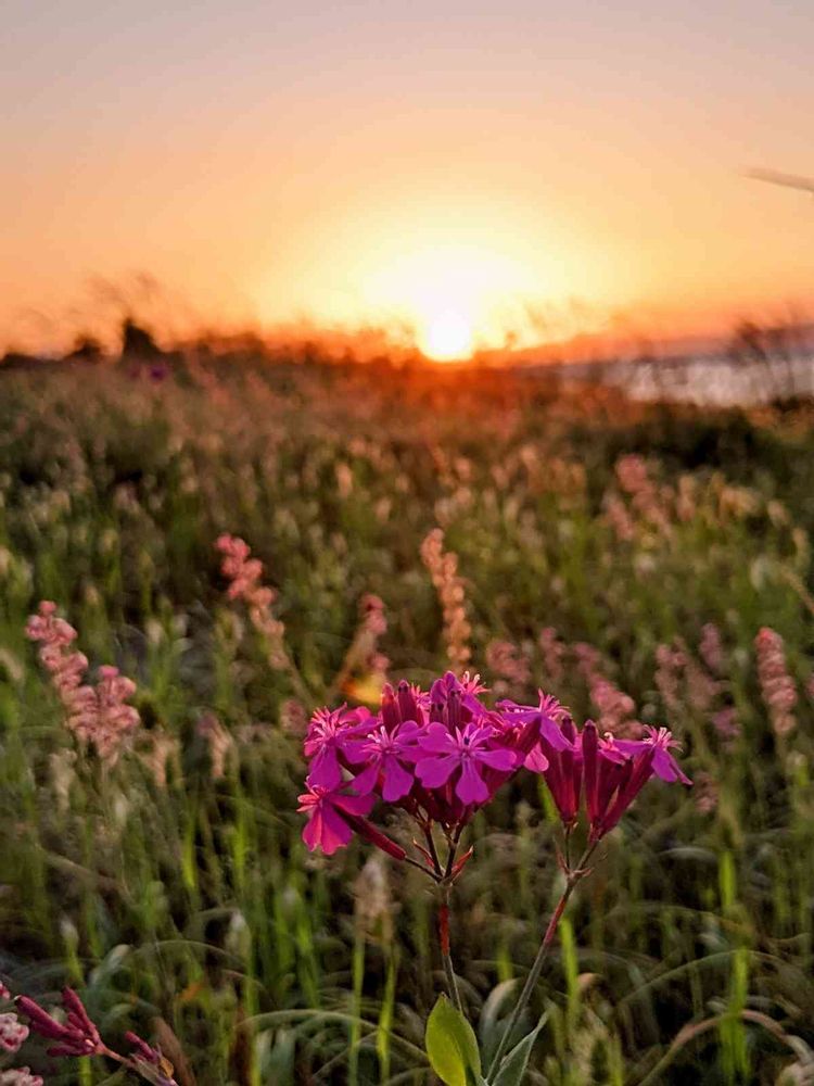 綺麗ですね〜😌夕日もお花も💖