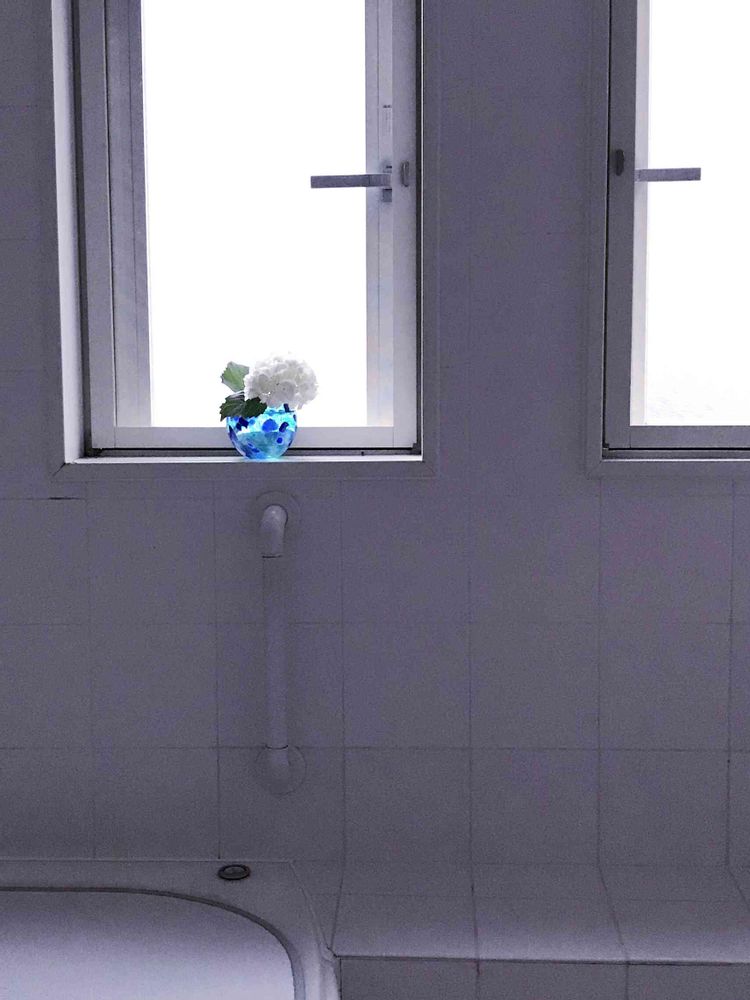 真っ白なバスルームに白の紫陽花💕