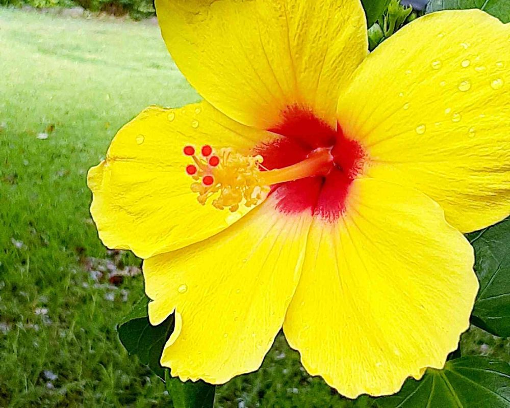 こんなに素敵なハイビスカス🌼が待っていたら、私雨でもお散歩サボりません😂