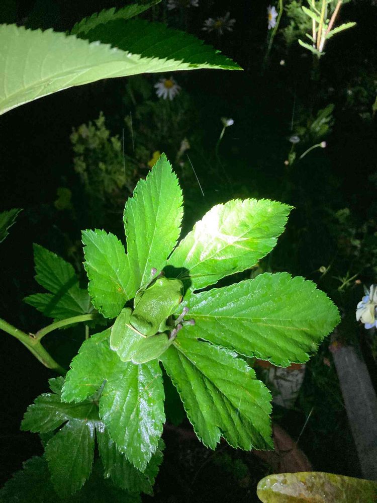夜のゴミステーション散歩帰りに青蛙さんが佇んでいたので庭にお連れしました🐸