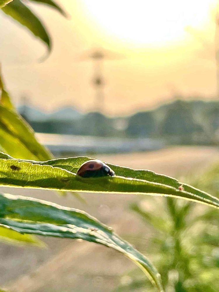 朝日に光るてんとう虫がキュート♡